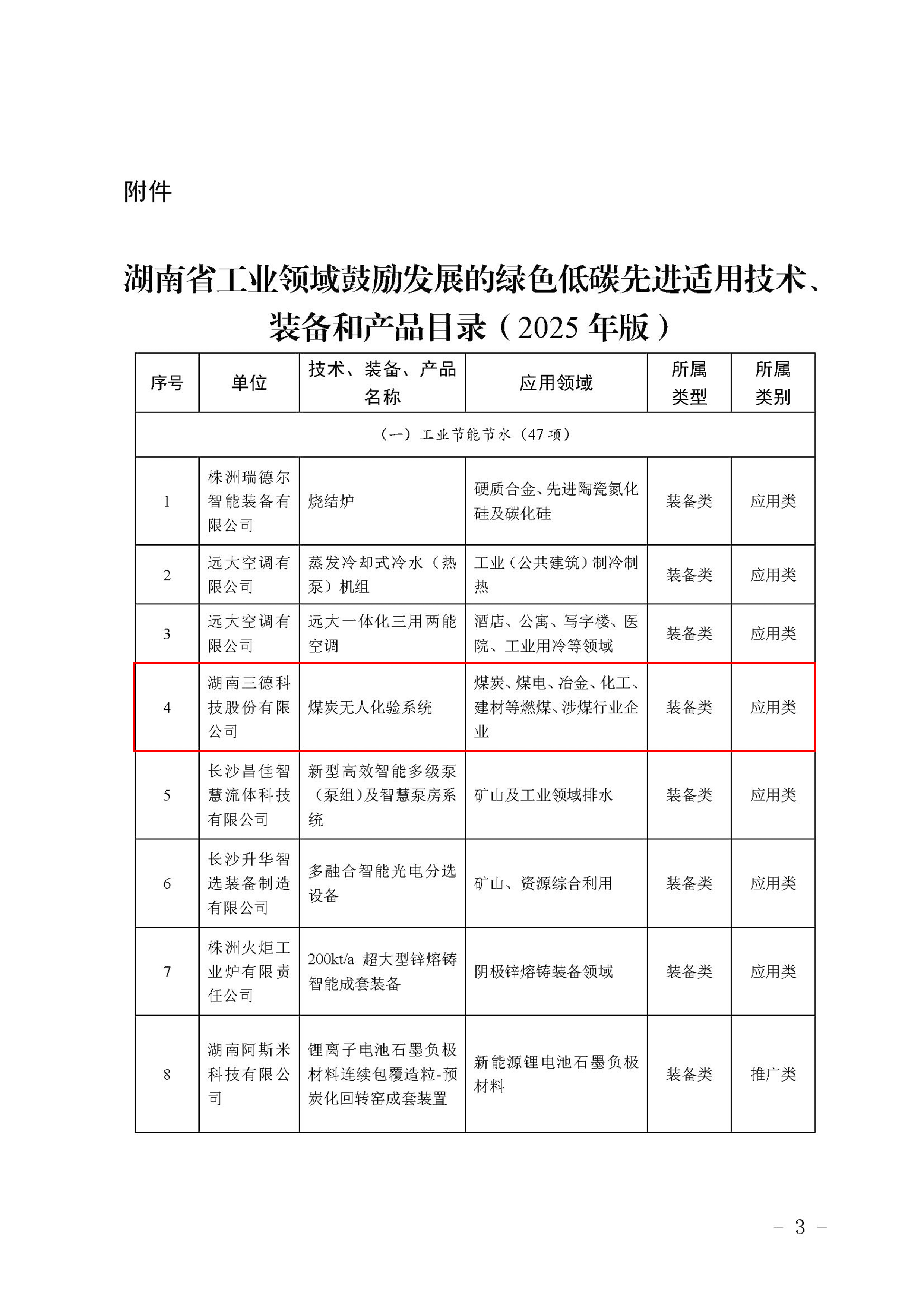 近日,湖南省工业和信息化厅发布《湖南省工业领域鼓励发展的绿色低碳先进适用技术、装备和产品目录(2025年版)》,三德科技(股票代码:300515)自主研发的煤炭无人化验系统(SDIAS)成功入选,标志着该装备在智能化检测与绿色低碳领域的创新价值获得政府高度认可。